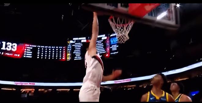 克林根在還剩5分30秒完成2+1后楊瀚森起身為大哥鼓掌,小楊還剩3分43秒被斯普利特?fù)Q上場,垃圾時間終于再度得到機(jī)會。楊瀚森常規(guī)賽第一個暴扣來了。